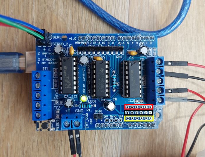 L293D 모터 드라이버 쉴드가 막고 있으니